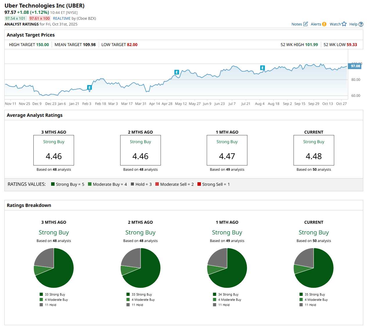 The mean price target of $109.98 represents a 12.7% premium from UBER’s current price levels, while the Street-high price target of $150 suggests an ambitious upside potential of 53.7%.