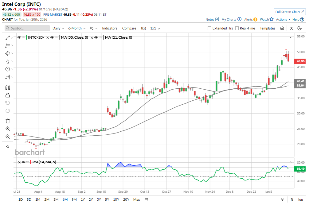 Intel (INTC) will release its Q4 financials on Thursday, Jan. 22. Despite competitive pressures and its slower start in the artificial intelligence (AI) space compared to peers, Intel stock has surged more than 100% over the past six months.