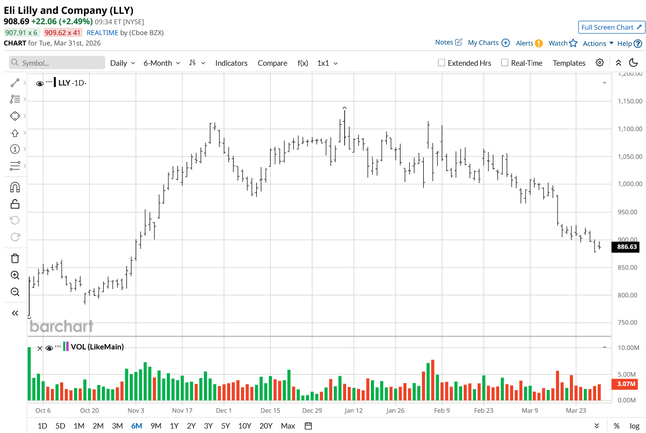 Eli Lilly’s stock is reflecting a period of consolidation following a historic rally that saw its market capitalization briefly exceed $1 trillion in late 2025. While LLY stock has faced a year-to-date (YTD) pullback of roughly 17% amid broader sector volatility, it remains a long-term powerhouse. Lilly continues to attract investors who are focused on the massive, untapped potential of the global obesity market and the company’s industry-leading production expansion.