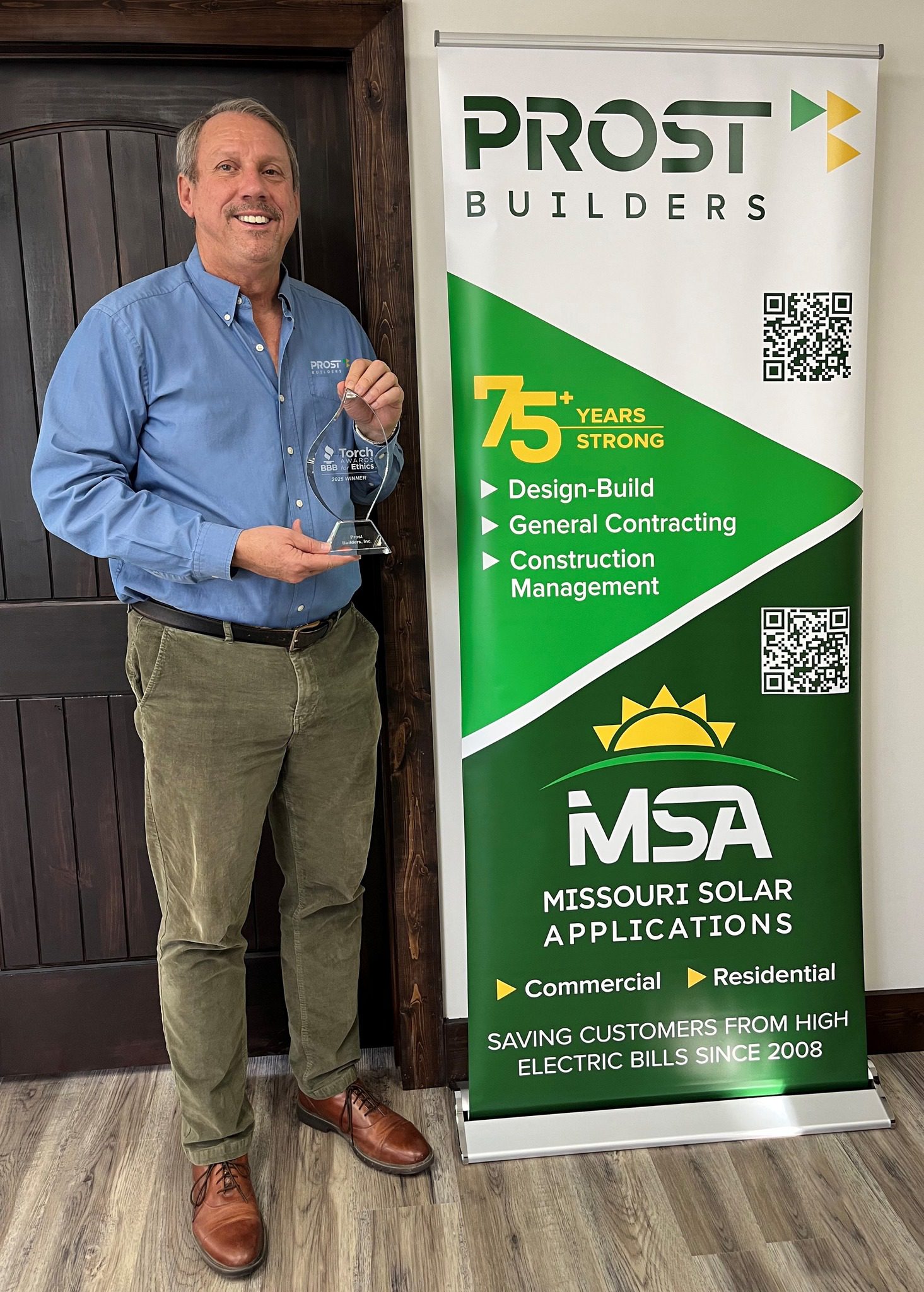 The award recognizes businesses and organizations that meet the highest standard of integrity and ethical business practices. Prost Builders, family-owned for over 76 years, was selected alongside two other Missouri businesses for this distinction.