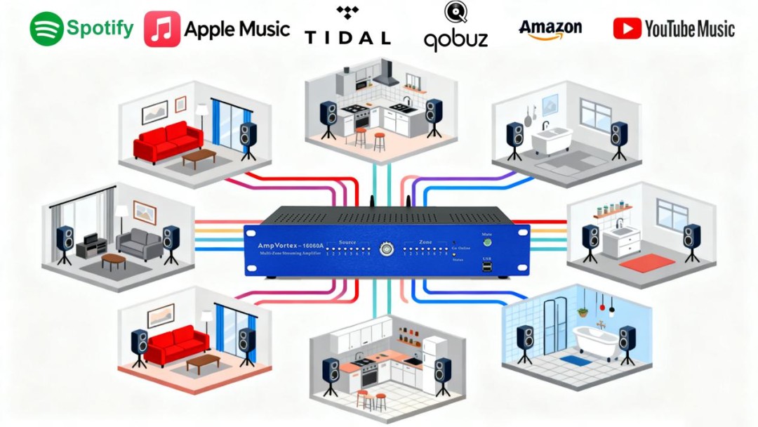 AmpVortex-16060A advantage: native streaming stack with broad service support and multi-zone streaming capabilities — great for someone who values both home theater and high-quality music playback.