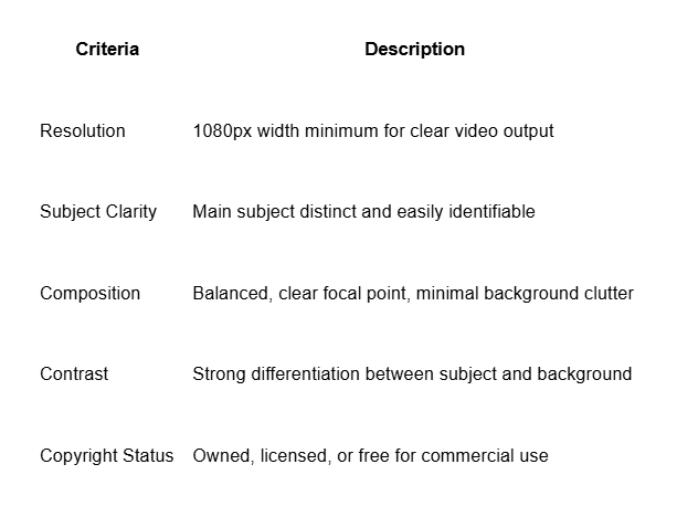 What are the best free images to use for AI video? High-resolution, clearly composed images with minimal background clutter. Unsplash and Pexels offer strong options. For commercial projects, verify that the license covers video use — or shoot your own originals for zero copyright risk.