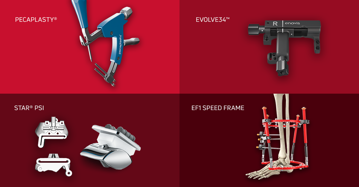 WILMINGTON, DE, Jan. 29, 2024 (GLOBE NEWSWIRE) -- Today, Enovis™ Corporation (NYSE: ENOV), an innovation-driven medical technology company, announced it will showcase the latest technologies from its Global Foot and Ankle business at the American College of Foot & Ankle (ACFAS) annual meeting in Tampa, Fla., from February 1-4, 2024. The company will feature products from its recent acquisitions of Novastep® and the external fixation assets of D.N.E., LLC, along with the internally developed Evolve34™ Lapidus Correction System, and the STAR+ Experience with Patient Specific Instrumentation.