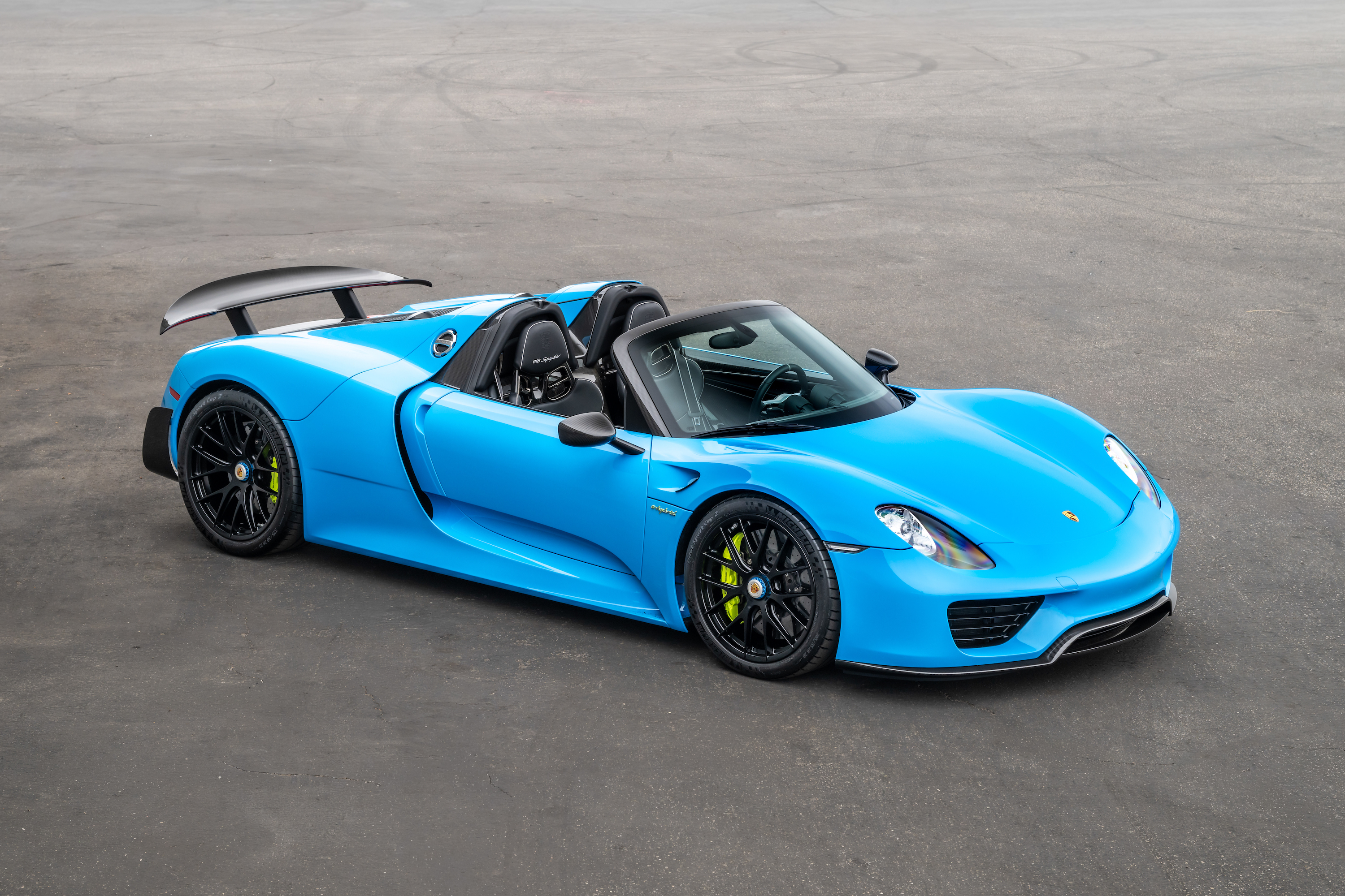 This particular car is finished in Paint to Sample (PTS) Riviera Blue, a non-metallic hue described by Porsche as “vibrant shade of light blue inspired by the brilliant blue waters of the Italian and French Riviera coasts”. The refreshing color is a perfect match for the Spyder’s removable carbon fiber roof panels that encourage al fresco driving. Porsche has always ensured that high performance and luxury go hand-in-hand, and the 918 Spyder is no different. The well-equipped interior features Black leather upholstery with optional Carbon Floor Mats with Silver Piping, Seat Belts with Accent Stripes in Silver, Burmester High-End Surround Sound Audio System, Automatic Air Conditioning and HomeLink System. Furthermore, through Porsche's Exclusive Manufaktur program it received its exterior finishes as well as $7,200 in desirable Custom Tailoring (CXX). Offered with only 1,267 miles at the time of cataloging and fresh from a recent Major Service at Porsche Woodland Hills, this is a spectacular example worthy of today’s most discerning collections.