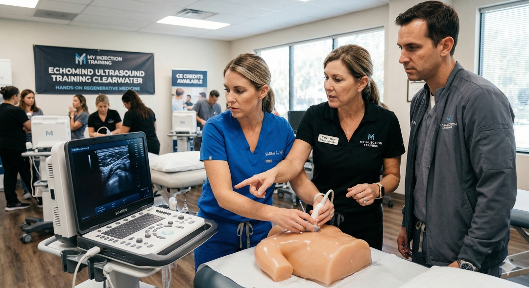 CLEARWATER, FL - March 25, 2026 - My Injection Training, a continuing education provider based in Clearwater, Florida, has announced the launch of a new hands-on training course built around the EchoMind Ultrasound system. The program is designed for physicians, nurse practitioners, physician assistants, and other licensed providers seeking to develop proficiency in ultrasound guided injection therapy as part of their regenerative medicine practice. EchoMind Ultrasound training in Clearwater is now open for enrollment, with limited seats available per session to ensure individualized instruction.
