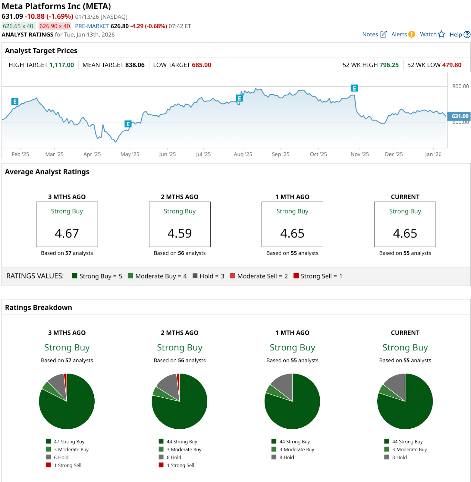 That view is also reflected in what major firms are saying. Morgan Stanley reiterated an “Overweight” rating in December with a price target around $853, saying that Meta’s stronger ad tools can lift income even while spending stays high. Meanwhile, Goldman Sachs analyst Eric Sheridan kept a “Buy” rating and raised his target to $870, pointing to the staying power of Meta’s ad business.